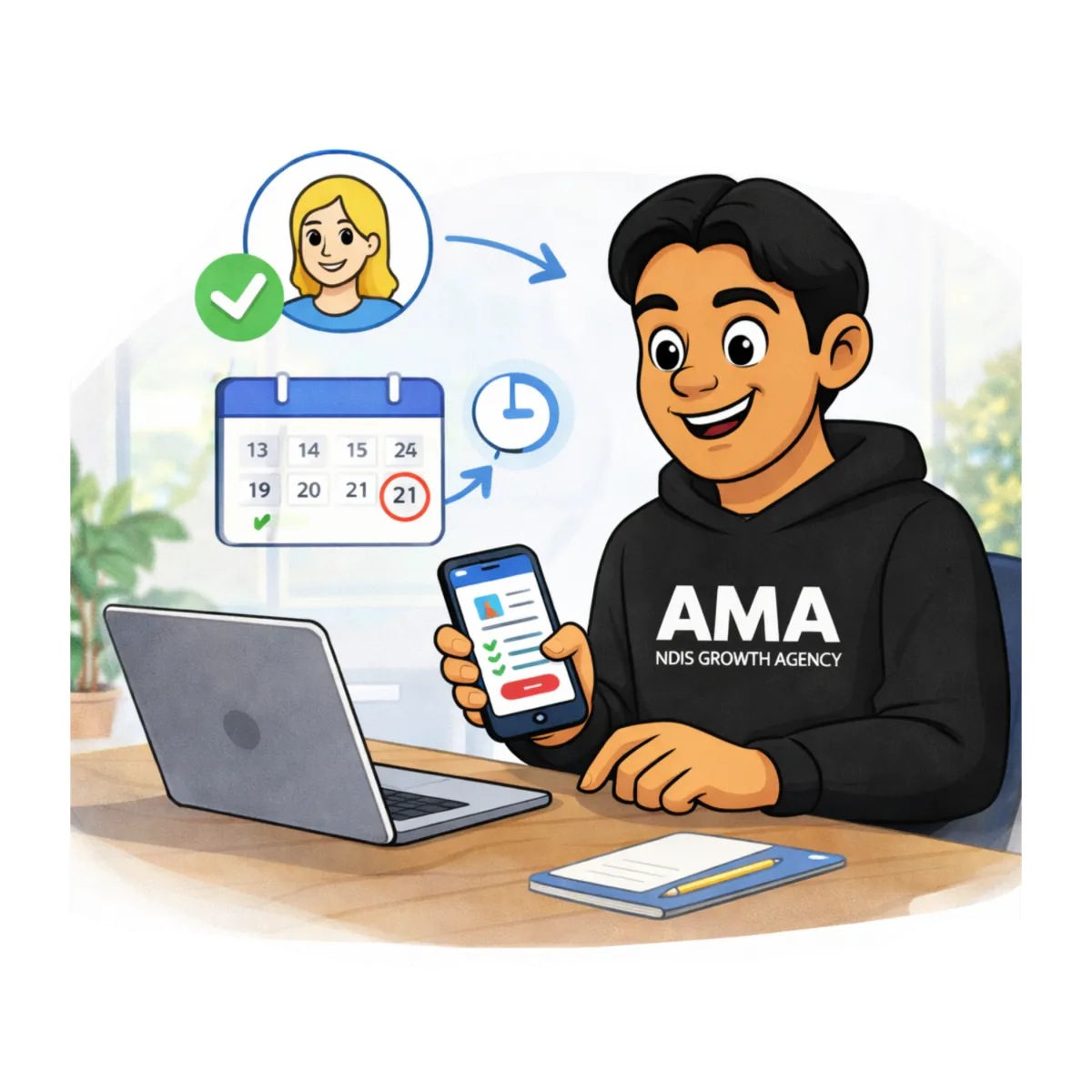 We are an NDIS growth partner built to help providers grow with clarity and confidence. Everything we do is designed to attract the right participants, build trust, and create predictable growth through simple systems that work. With a focus on strategy, real conversations, and long term partnerships, we make growth feel clear, human, and sustainable so you can focus on what matters most; supporting people.